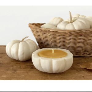 We like these ceramic pumpkins – that come in a set for serving soup, but would also work for candles and you can use the larger one for a fall flower arrangement or create a pumpkin tablescape.
